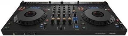 - Creativity in motion – 7″ Motorized high torque aluminum platters with magnetic acrylic discs, Build in Displays for Song info and Waveforms, OLED Pad Mode Displays, advanced FX and Stem Controls